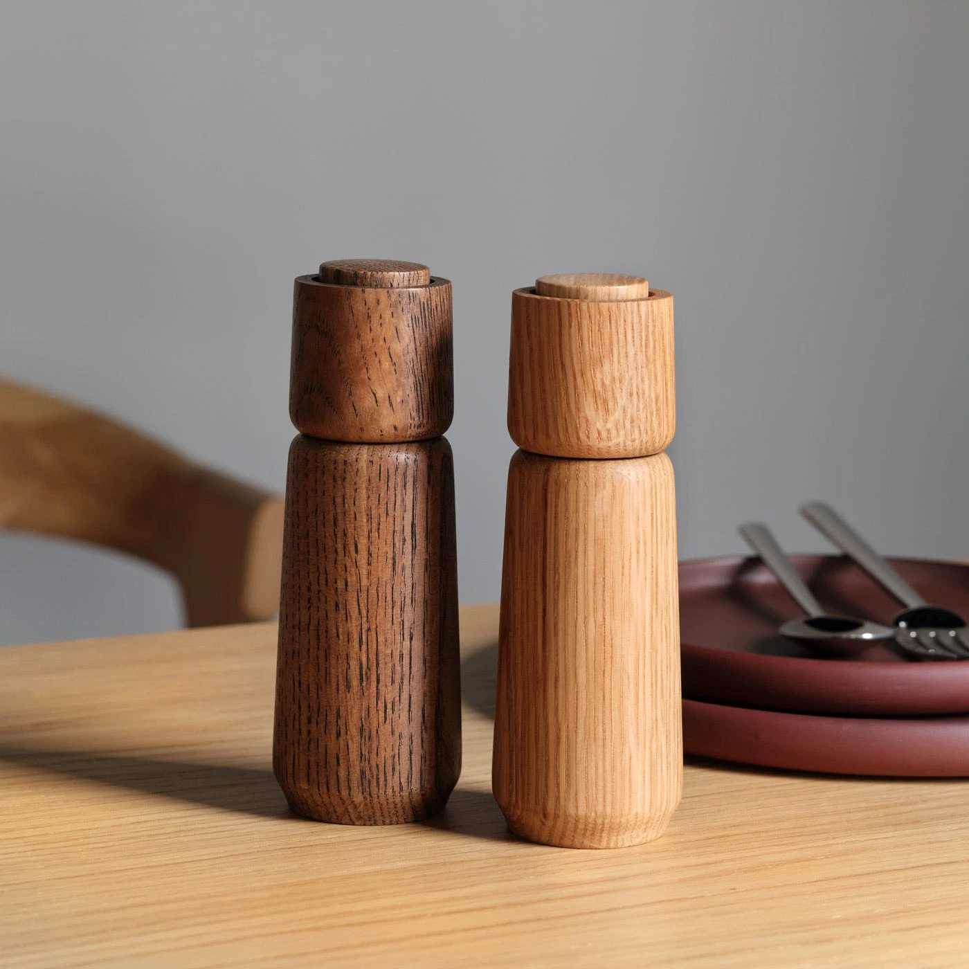 - Light or dark oak; Grinder can be used for either salt or pepper.
