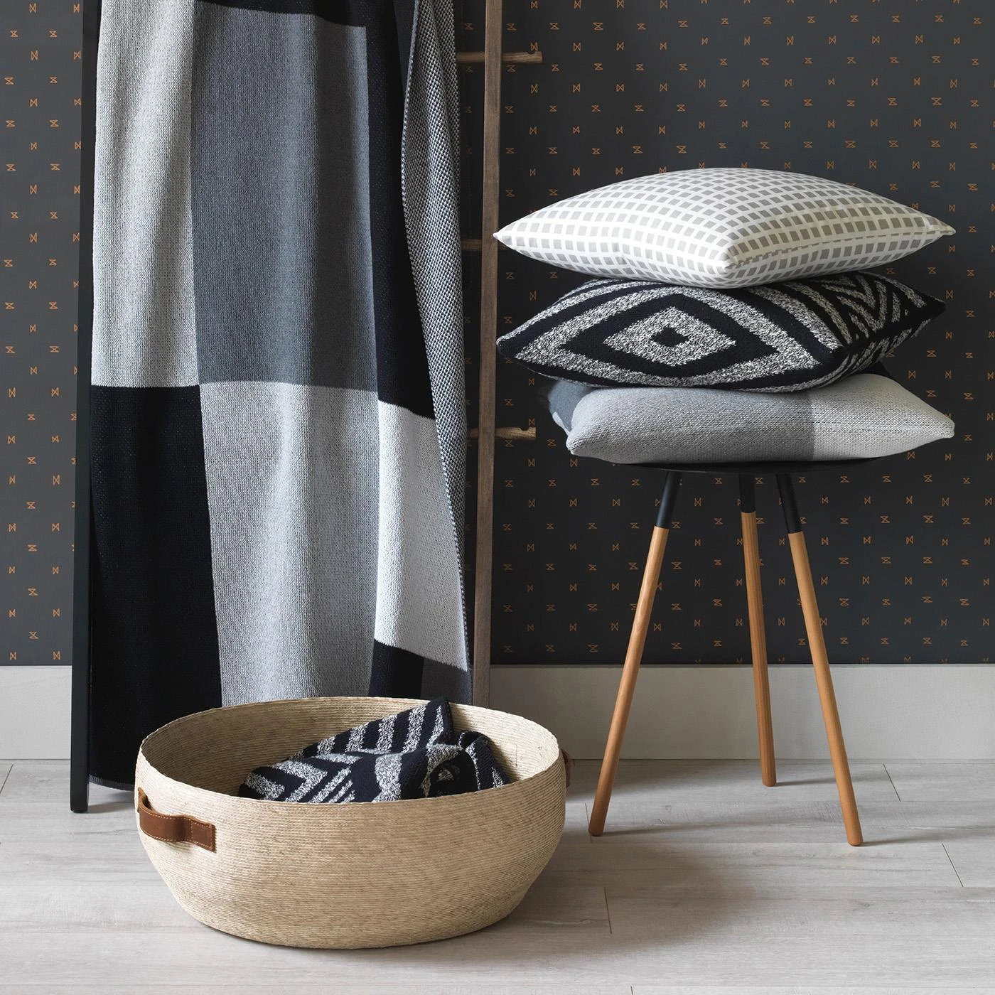Welcome to a space where bold-dark drama meets sparkling fun with one of our favorite patterns, Sashi Geo. Built around black, white, and metallic patterns, our new wallpaper collection aims to be as versatile as it is easy on the eye. The result: a strong statement that can play nicely with others wherever you hang it. Cover the whole room, create a feature wall, add depth to your bookcases or cabinets… the possibilities are endless. Sounds like strong, modern style at its best.