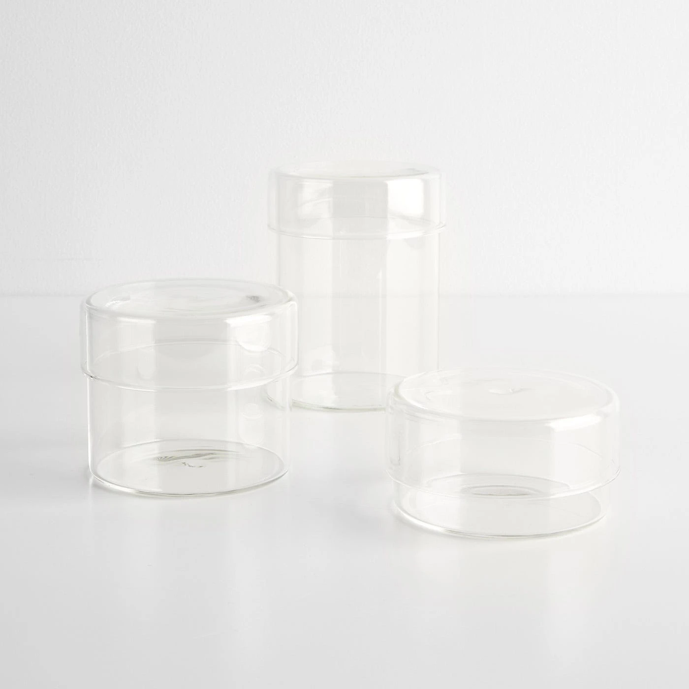 Modern design is all about simplicity. The clean look of the Schale Glass Cases are the perfect storage solution free from distractions. Use them to store toiletries, office supplies, or dry goods in the kitchen. No matter what is kept inside, these straight-forward containers are a simple but effective design choice. Standing just over 5″ tall and made from heat-resistant glass, this case can also be used as two open containers for small items of all types.