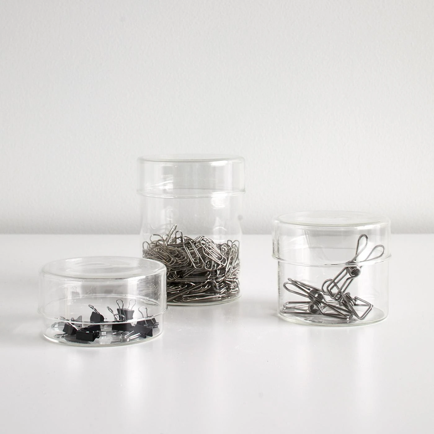 Modern design is all about simplicity. The clean look of the Schale Glass Cases are the perfect storage solution free from distractions. Use them to store toiletries, office supplies, or dry goods in the kitchen. No matter what is kept inside, these straight-forward containers are a simple but effective design choice. Standing just over 3.5″ tall and made from heat-resistant glass, this case can also be used as two open containers for small items of all types.