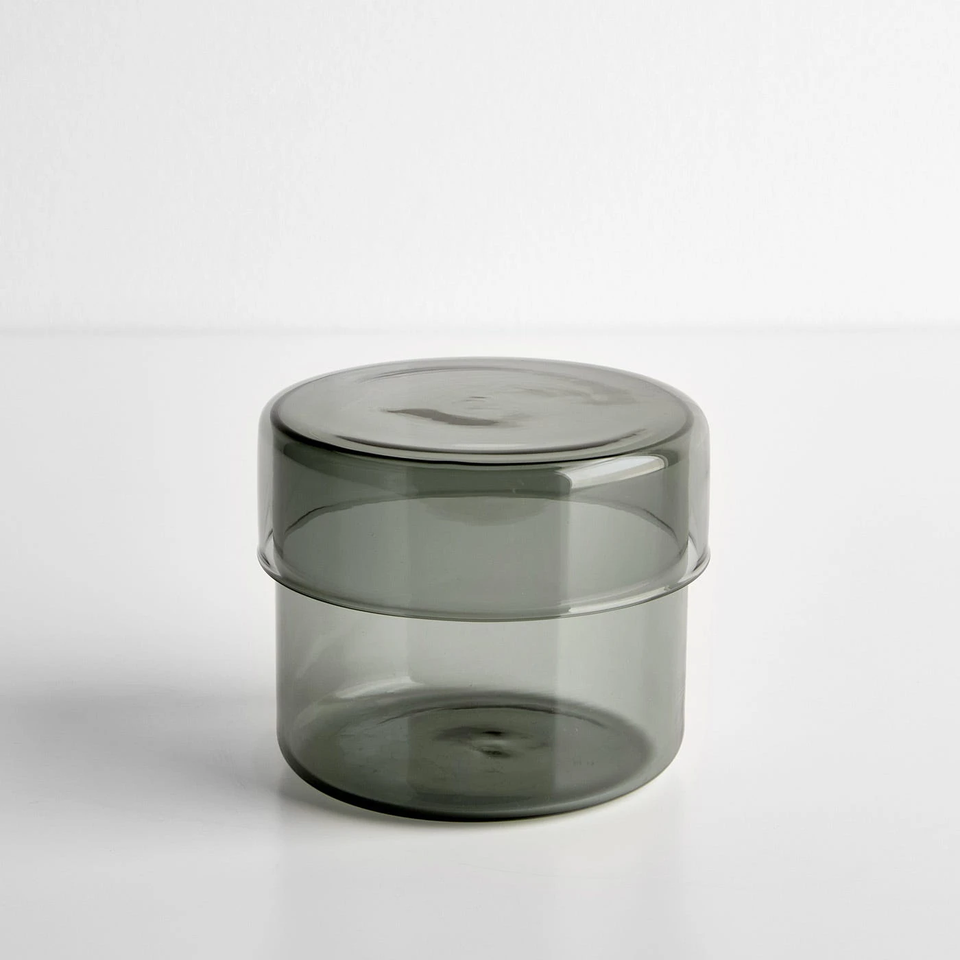 The Schale Smoke Medium Glass Case streamlines home and office storage. The softly rounded edges and smooth glass add a sophisticated touch to a shelf, cabinet, pantry, desk or countertop. The gray-tinted transparent surface reveals the items contained inside for easier identification. Standing just over 3.5″ tall and made from heat-resistant glass, this case is perfectly sized to store dry goods and food or used as two open containers for small items of all types.