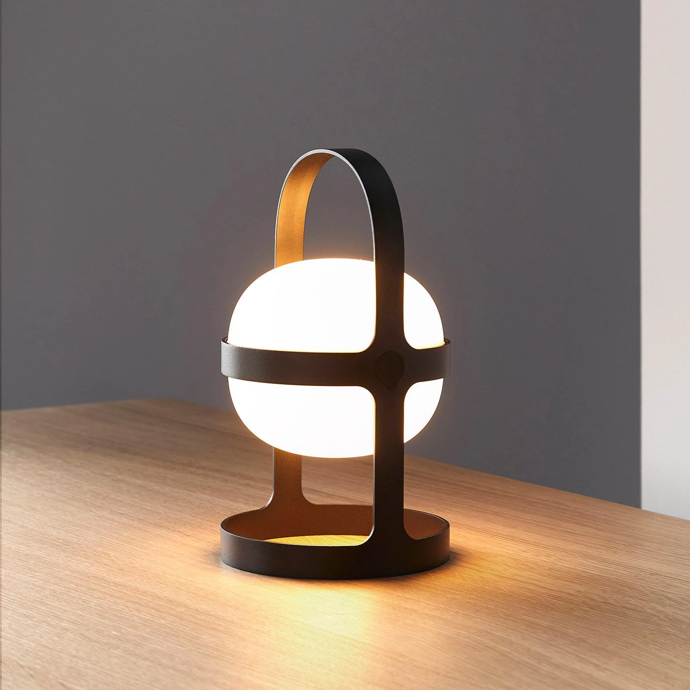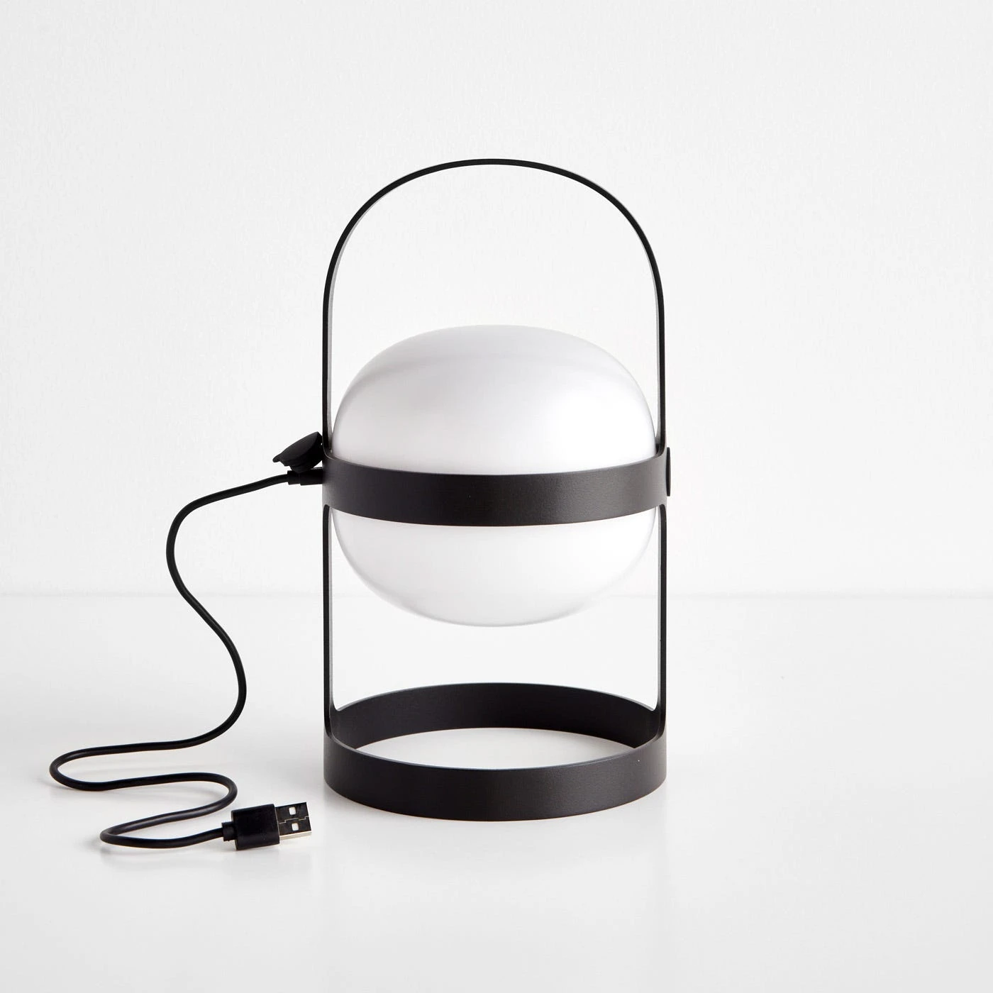 Illuminate your space with contemporary beauty powered by nature. This distinctive solar-powered lantern appears like a floating orb in a unique, cage-like frame, the top of which functions as a convenient handle. Solar cells under the surface recharge the battery with 100% green solar energy. When the sun is not out, simply charge with an included micro-USB cable instead. Great for both indoor and outdoor use, this lamp adds a soft, inviting glow to the dining table, in the bedroom or out on a terrace. A light sensor can be activated to automatically turn the lamp on in dark conditions.