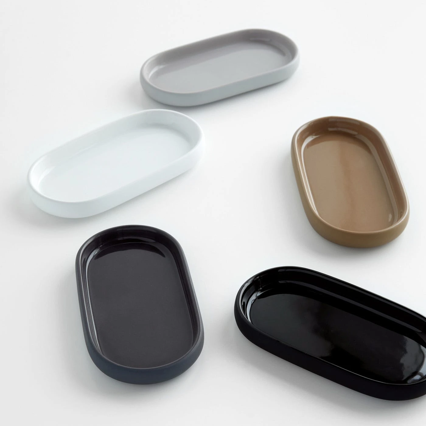 The Sono Graphite Tray brings effortless style to bathroom countertop storage. This modern ceramic tray features gently rounded curves and a monochromatic design in a rich charcoal color. The soft-touch matte coating on the exterior creates a subtle contrast with the glossy tray surface. Use it to hold its coordinating soap dispenser and tumbler for a tidy look on your bathroom counter. The Sono Graphite Tumbler and Soap Dispenser are conveniently designed to fit on this dark gray tray. It can also be used to collect keys in the entryway or store small jewelry on a vanity.