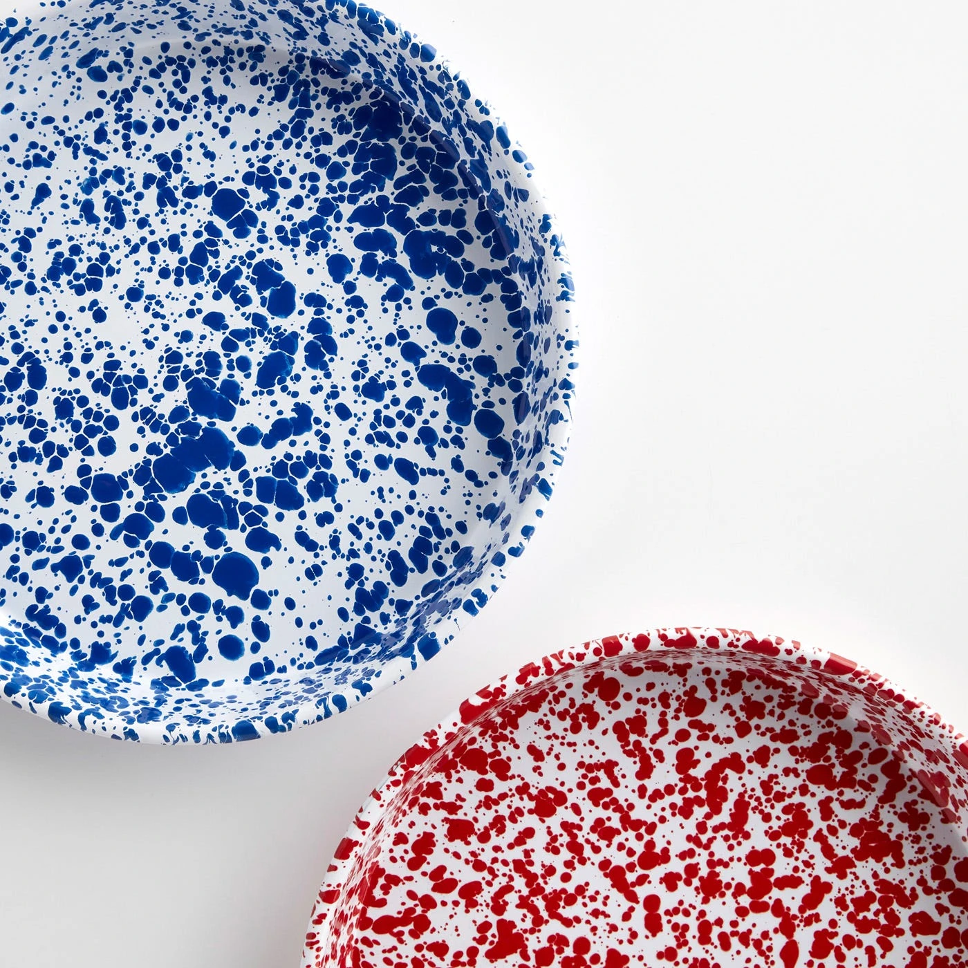 The Splatter Enamelware Deep Tray is time-tested and designed to last for generations. This porcelain-coated heavy-duty steel tray is from Crow Canyon, a Northern California-based company who has specialized in enamelware since 1977. Use it to carry drinks to your guests or transfer your meal from kitchen to table. This high-sided, speckled tray doubles as a pan that’s safe to use in the oven, on the grill or over the campfire. An array of crimson red dots hand-splattered by skilled artisans adds a lively touch and distinguishes this enamelware tray as a one-of-a-kind statement piece.