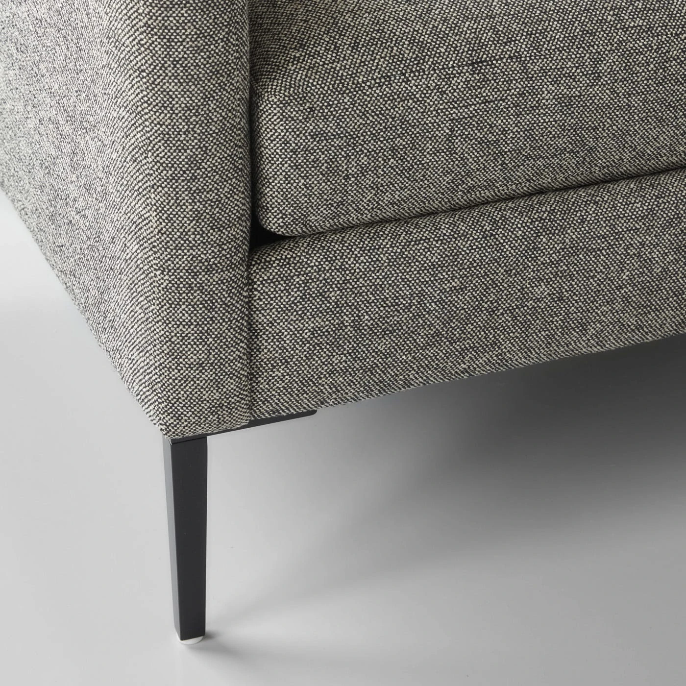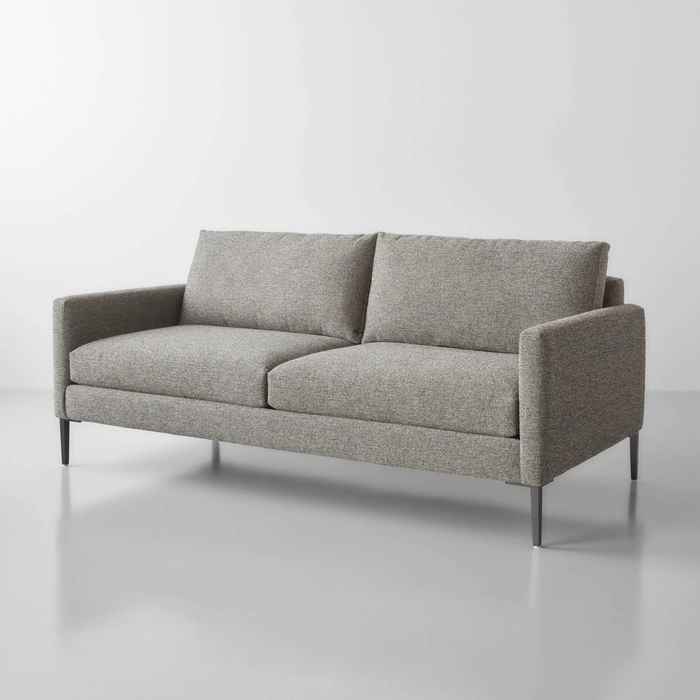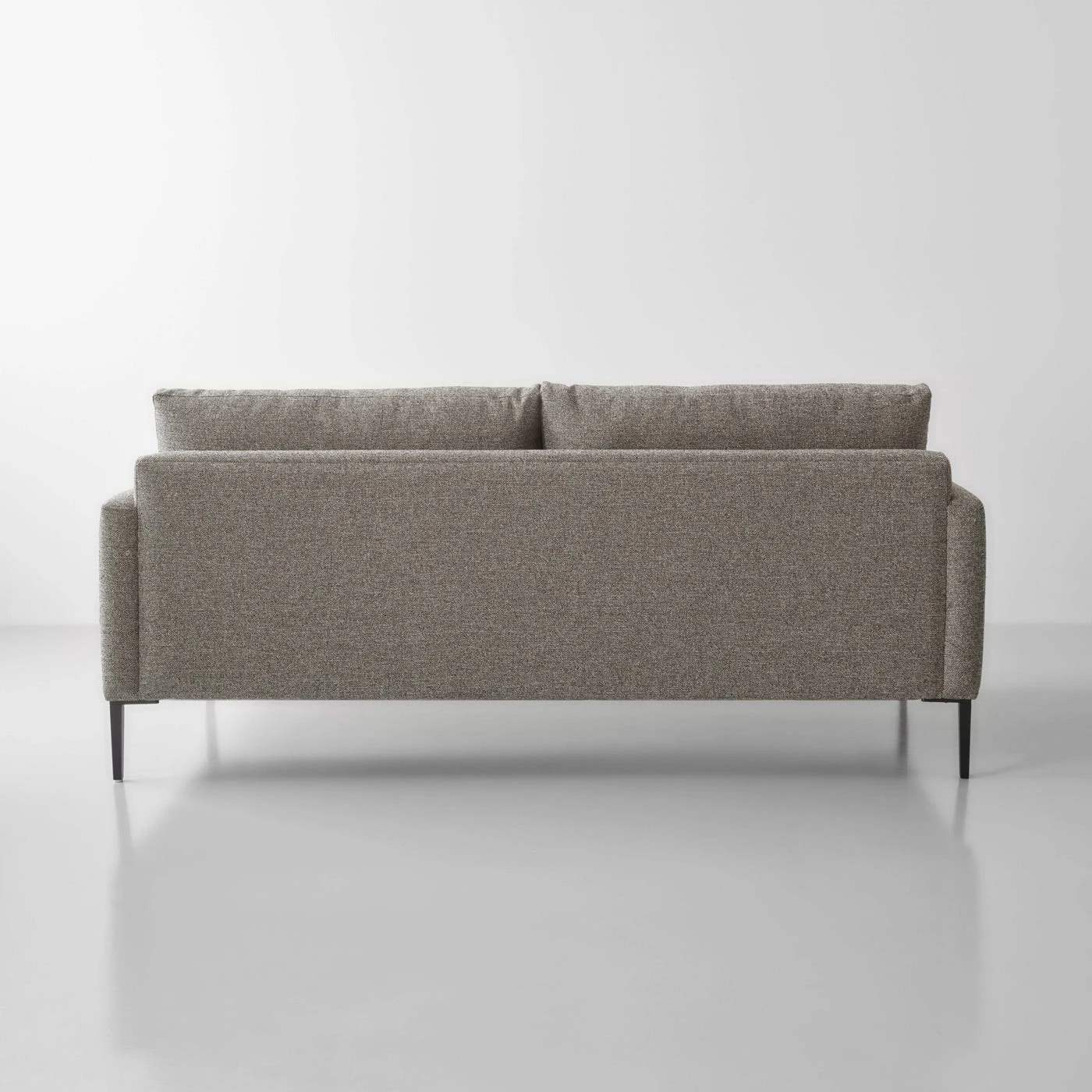 Designed with smaller spaces in mind, the Talman Tweed Black Apartment Sofa offers comfortable seating for two with a compact footprint. Its inviting, slim profile includes track arms and tapered metal legs. Apparel-inspired tweed black fabric acts as a compelling neutral that fits both modern and traditional interiors. With its medium firmness and seat depth, it’s the ideal sofa for everything from sophisticated dinner parties to laid-back movie nights. All the while, this expertly handcrafted sofa offers unyielding support through no-sag springs and a solid maple frame.
