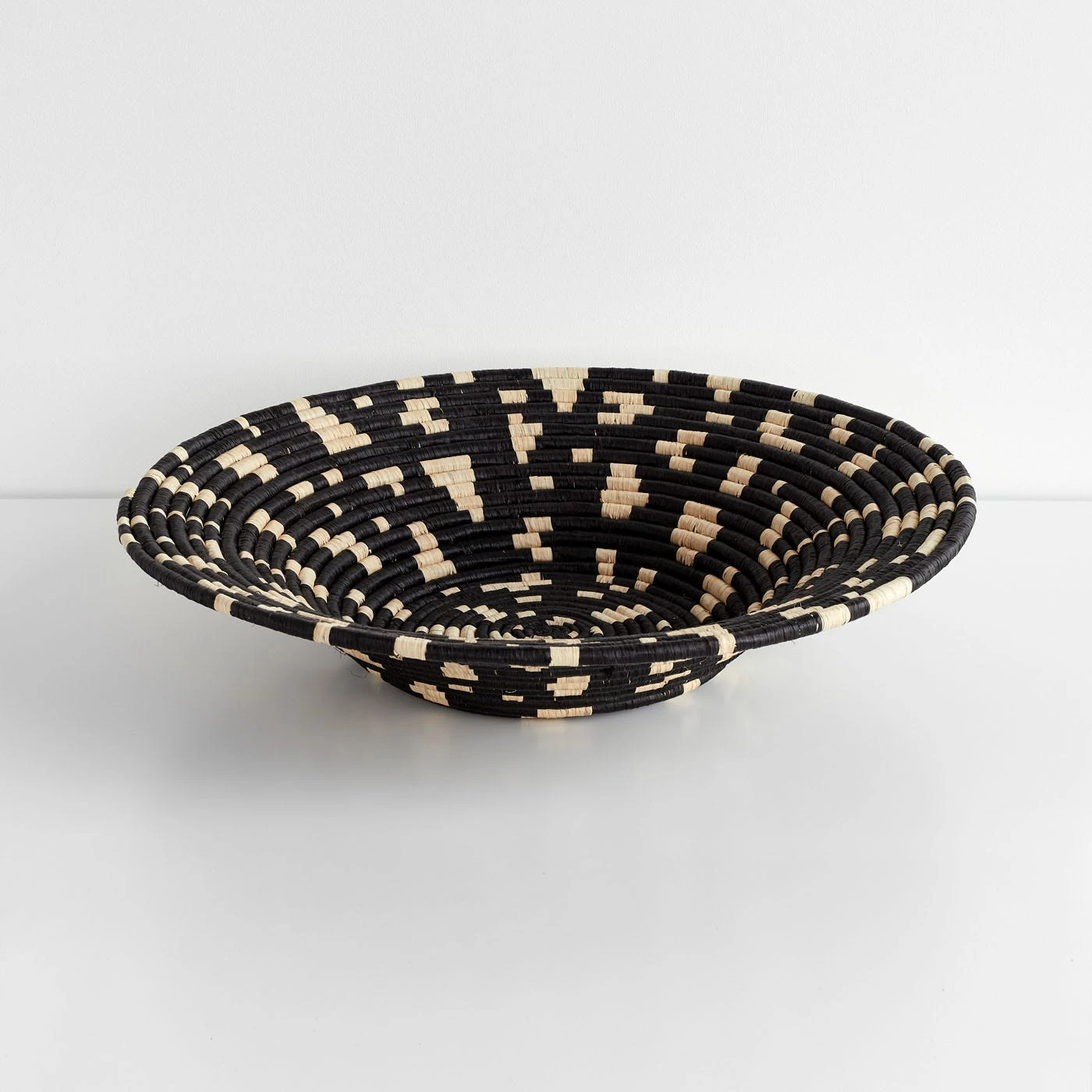 Graphic texture and an empowering social cause are woven into this stunning terrazzo-inspired bowl. It’s certified fair trade and made from all-natural raffia palm leaves and banana leaf fibers by craftspeople using techniques that have been passed down for generations. Every raffia bowl is one of a kind, due to its handmade nature. It features a loop for hanging on the backside, so you can display it when it’s not in use. This large terrazzo bowl makes a statement as a functional and sculptural dining table centerpiece.
