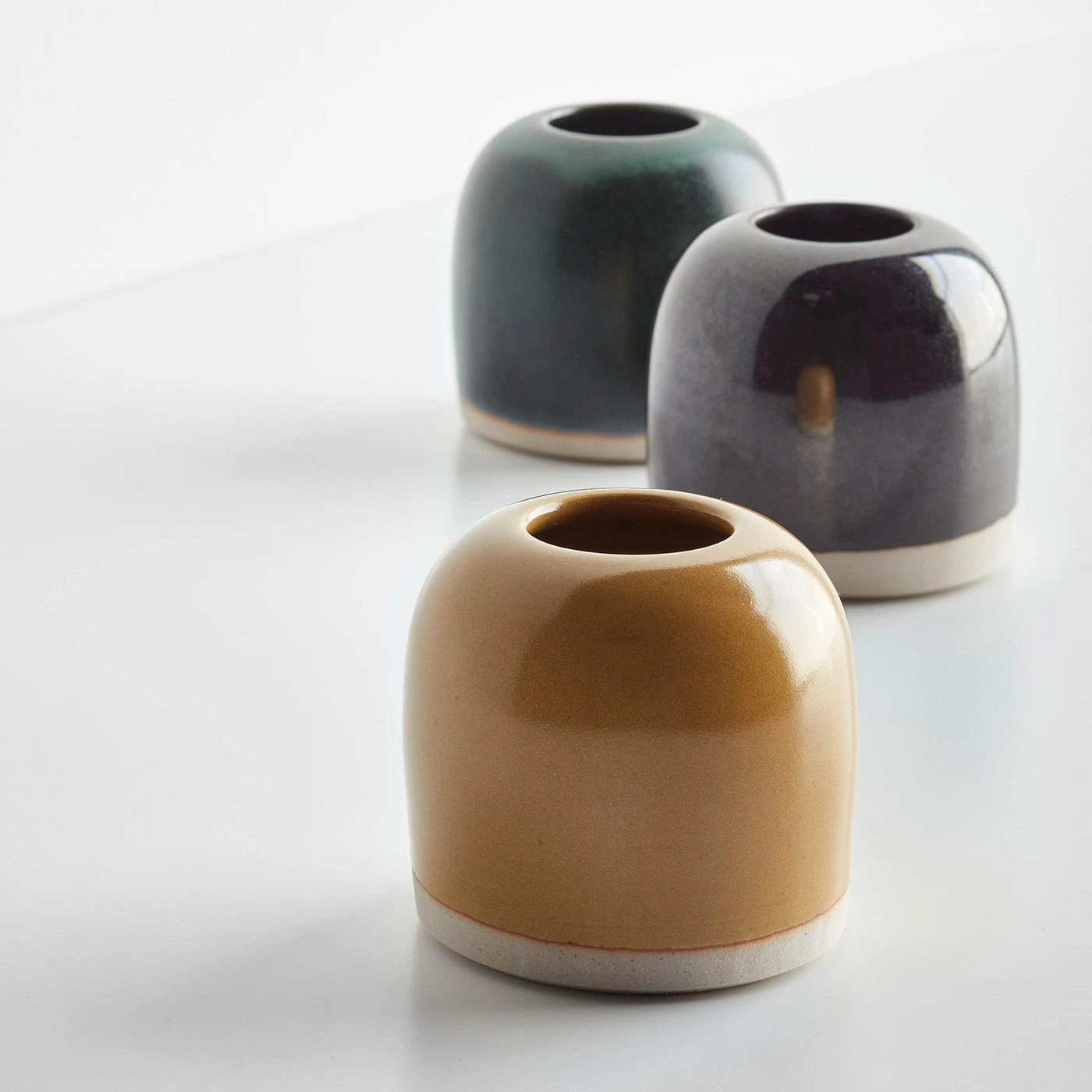 - Hand-thrown stoneware with a matte glaze and unglazed raw clay bottom.