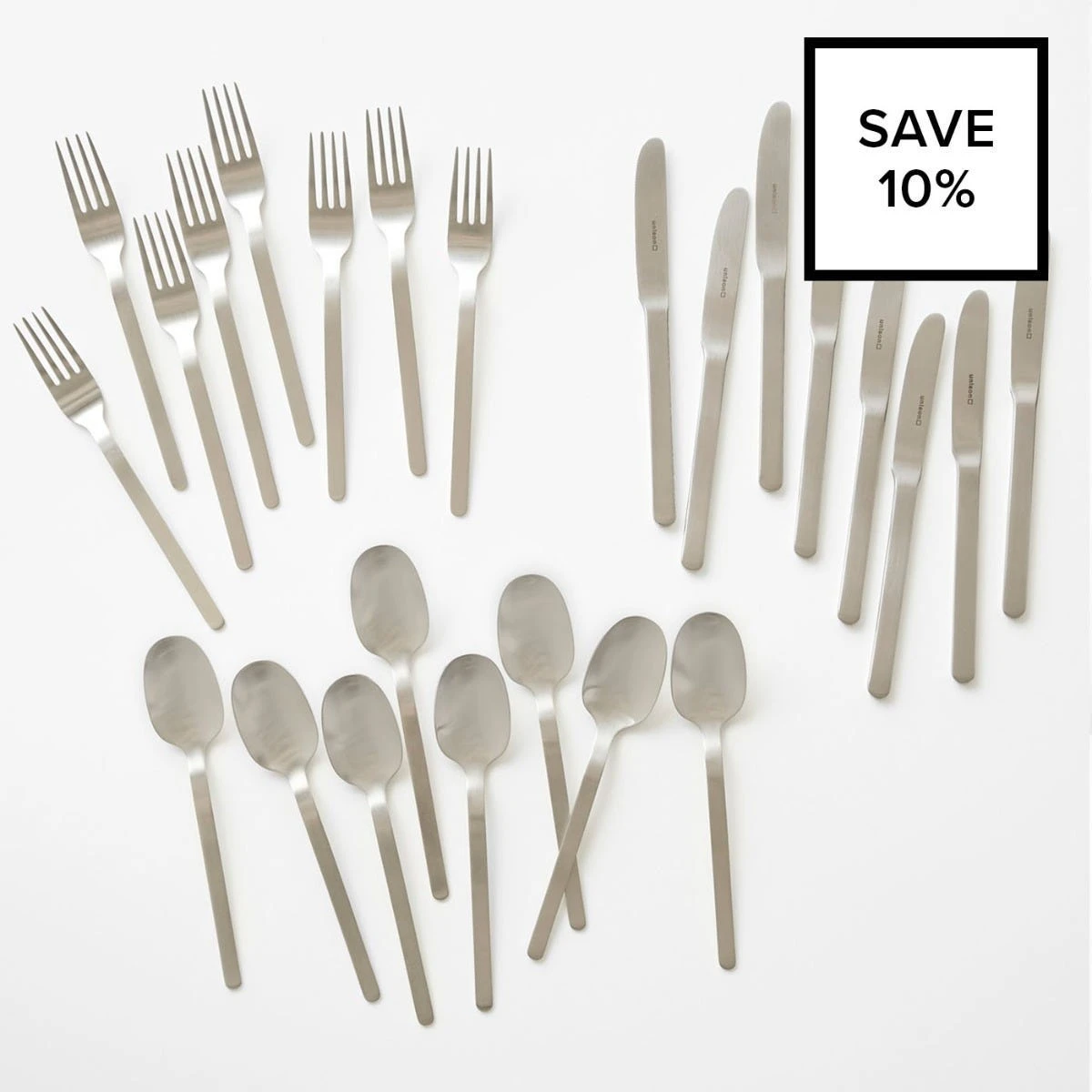 Fork, knife and spoon complement each other beautifully in our Walter Stainless Steel Flatware Set. Made in Portugal, these simple pieces are the perfect universal utensils that combine careful craftsmanship with hard-working versatility. A 10% set discount is applied for purchasing the 24 piece bundle.