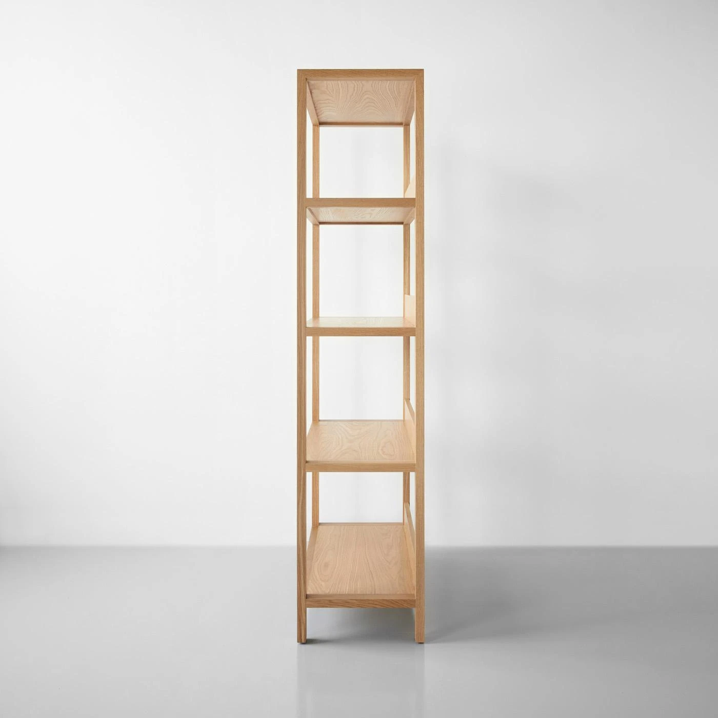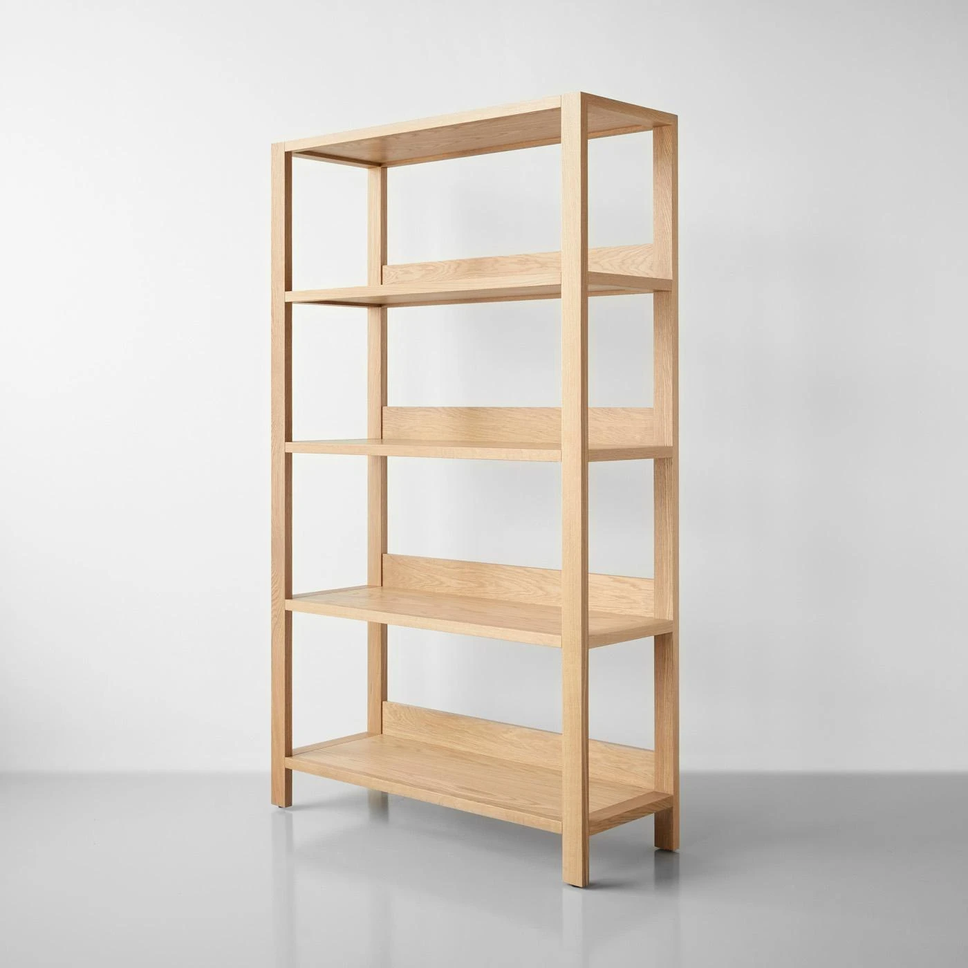 Featuring clean lines, this bookcase is a quintessentially modern foundation for your home library. Handmade in Canada by a family-owned company that has been crafting high-quality and sustainable wood furniture for more than two decades. This wooden bookshelf, made from white oak, features solid and fully assembled construction. Detailing like mitered top corners and a rear ledge (to prevent objects from falling) are examples of the thoughtfully crafted design. This large well-built bookcase looks distinctive on its own or coordinated with our Wolcott and Fulton Collections. Also available in a smaller width bookshelf and a dark Pewter finish.