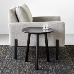 The 17.75” YYY Coffee Table fits into small spaces to create convenient tabletop surface wherever needed. The thoughtful design features a straight edge on one side, which allows you to slide it right up against a sofa, chair, bed or wall so items on top are conveniently within reach. Made from solid beech wood with a deep black stained finish, this table hides a distinctive feature underneath: a Y-shaped leg base from which the table gets its name. Designed for easy assembly, it can be used alone or paired with YYY Side Tables in two other sizes for a multi-level configuration.